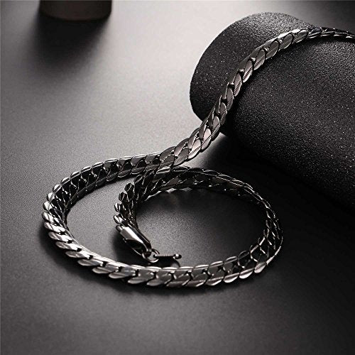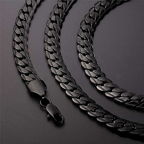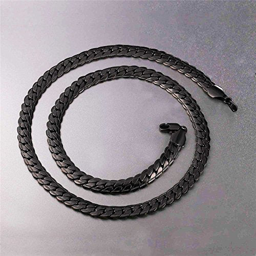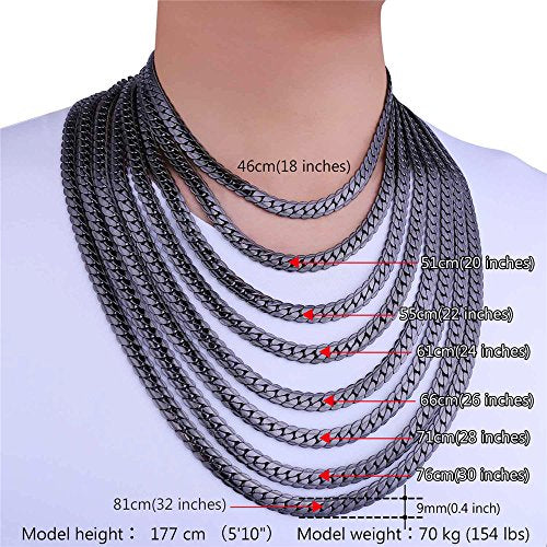 U7 Collana Uomo a Catena Cubana Larghezza 6mm 9mm Grossa Nero(9mm)
