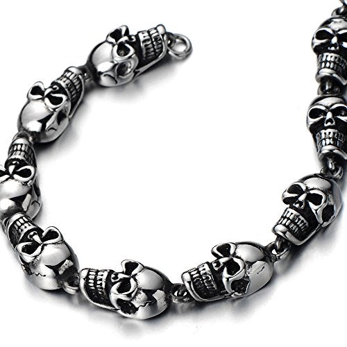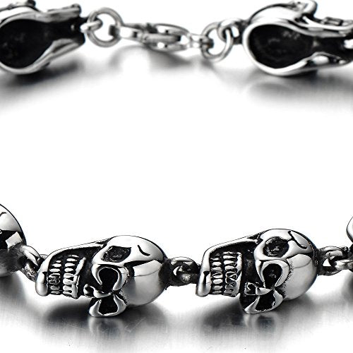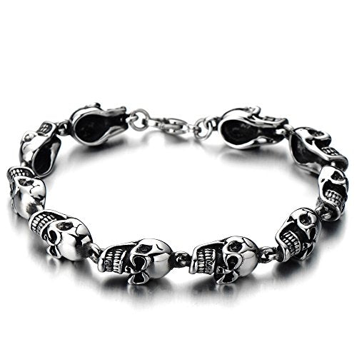 Unisex, Braccialetto del Cranio Teschio, Bracciale da Uomo Donna, Acciaio Inossidabile, Lucidato a specchio