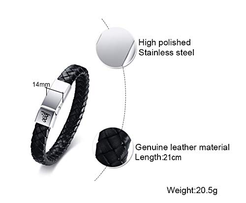 Vnox Bracciale in vera pelle da uomo in acciaio inossidabile musulmano Islam Allah Dio Bracciale con polsino con chiusura magnetica,21,5 cm