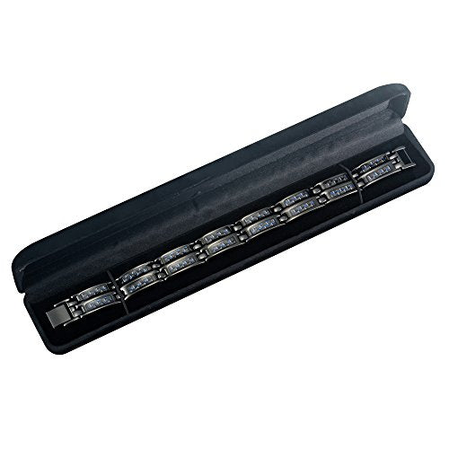 Bracciale magnetico da uomo in titanio nero solido e leggero. Questo bracciale contiene magneti da 3000 Gauss. Con questo bracciale è inclusa una spernatrice rimuovi maglie e una confezione regalo in velluto.