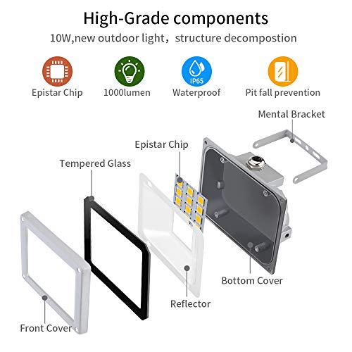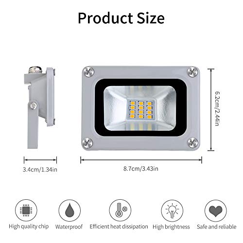 12V Proiettore a LED 10W Faretto LED 800lm Proiettore LED Esterno Impermeabile IP65 6500K Bianco Freddo proiettore per cortile garage officina[Clase de eficiencia energética A+]