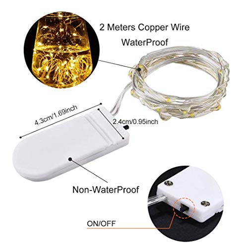 - Flessibilità: Ogni luci LED a batteria delle corde è lunga 2 metro, include 20 unità di perle gialle a led calde. Ciascuna perlina a led è separata da una distanza di dieci centimetri. le luci scintillio sono flessibili e facilmente modellabili in qualsiasi forma che ti piace, perfetto per la decorazione degli occhiali e per la decorazione della casa delle feste di Halloween.