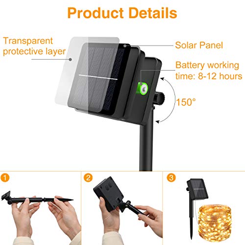- ⭐【Cosa ottieni】 2 Confezione da luci 120 LED a stringa di rame filo alimentate a energia solare,garanzia di rimborso di 60 giorni,1 anno di garanzia senza preoccupazioni, 24 ore di servizio clienti cordiale.(♥Eventuali problemi o dubbi durante il processo,contattaci direttamente via e-mail, faremo del nostro meglio per aiutarti a risolvere i tuoi problemi ♥)