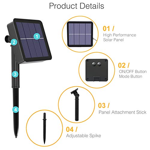 - 【8 modalità e batteria da 800 mAh】 Scegli l'effetto di illuminazione che preferisci e crea un'atmosfera romantica. Con un'elevata capacità della batteria che aumenta a 800 mAh, questa luce solare deve caricare solo 6-8 ore durante il giorno e può funzionare 8-14 ore durante la notte.