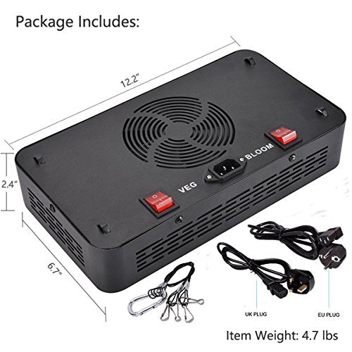 - Spettro completo di 12 bande da 380 a 740 nm, per la crescita e la fioritura delle piante per fornire tutto sotto il sole naturale, aggiungere abbastanza sostanze nutritive. Inoltre, i diodi UV e IR sembrano cupidi, che è normale, non ti preoccupare.