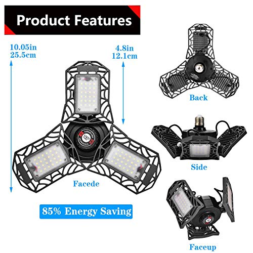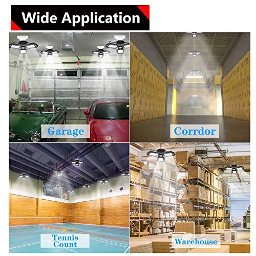 - 【Design Regolabile Lampada Parcheggio】I pannelli LED sono regolabili e puoi ruotarlo e regolare l'angolazione dell'alloggiamento della lampada in modo da dirigere la luce dove serve. L'angolo di copertura della lampada da officina può raggiungere i 270 °, l'intera stanza senza punto cieco. Ideale per Garage, Magazzino, Officina, Cantina, Negozio, Plafoniera, Palestra, Cucina, Pub ecc.