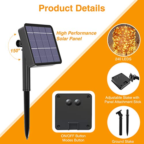 - ✨【Cosa ottieni】 240 LED in rame filo alimentate a energia solare luci,30 giorni di garanzia soddisfatti o rimborsati,1 anno di garanzia senza preoccupazioni, 24 ore di servizio clienti cordiale.