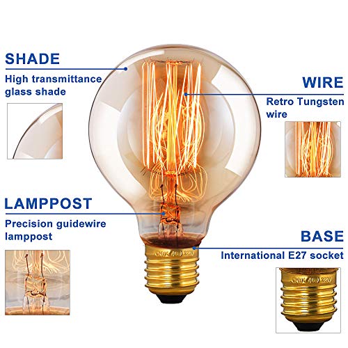 • Questa splendida lampadina d'epoca crea una atmosfera speciale nella vostra casa - le vecchie lampadine con I filamenti stile stile gabbia con una luce calda, proprio come gli originali inventati da Thomas Edison. Le lampadine sono molto versatili e possono essere utilizzate con un paralume o semplicemente da sole - possono essere utilizzate come luce principale in una stanza o possono essere semplicemente decorative. Attacco E27 lampadine a vite .