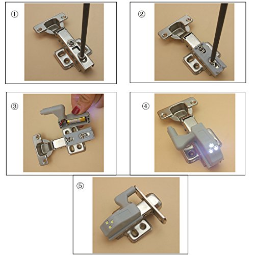 Super handy armadio luce, facile da installare e comodo da usare, quando aprite il vostro armadietto, illuminerà in su tutto l'armadietto. Note: come abbiamo mostrato, la nostra luce cerniera LED non si adattano tutti i tipi di cerniera. Di solito è adatta per la cerniera che le viti sulla cerniera può essere rimosso. Se la cerniera è uguale a quella mostrata nell'immagine, non sarà necessario utilizzare le viti che conferiamo. Per soddisfare il requisito di molti clienti di DIY, presentiamo 10 viti delle parti per il regalo libero, in modo da potete montato direttamente nel vostro armadietto non sulle cerniere. Molto comodo da usare. Specifiche: Colore chiaro: Bianco caldo Materiale: ABS Plastic Corpo materiale: ABS Modello del LED: 3 LED Sorgente luminosa: lampadine del LED Wattaggio: 0-5W Tensione: 12V Uso: alimentazione di emergenza Batterie richieste: Sì Batterie incluse: Sì Tipo della batteria: 12V 23A (incluso) Lampadine incluse: Sì Fonte: batteria asciutta Tipo: cerniera per mobili Certificazione: CE Contenuto della confezione: 10pcs LED + batteria + vite Installazione: 1: aprire dapprima le viti del cardine sul foglio 2: le viti e le cerniere del back sheet avvitate insieme 3: installare la batteria 4: installi nell'armadietto, apra la porta dell'armadietto, rilevi l'effetto della lampada. Contenuto del pacchetto: 10 * Cerniera lampada 10 * batteria 10 * Viti per regalo gratuito Nota: La cerniera non è inclusa nella confezione.