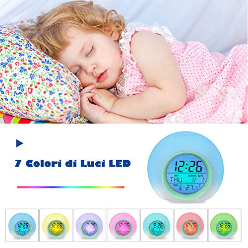HAMSWAN Sveglia Digitale, per Bambini, con 7 Colori di Blu
