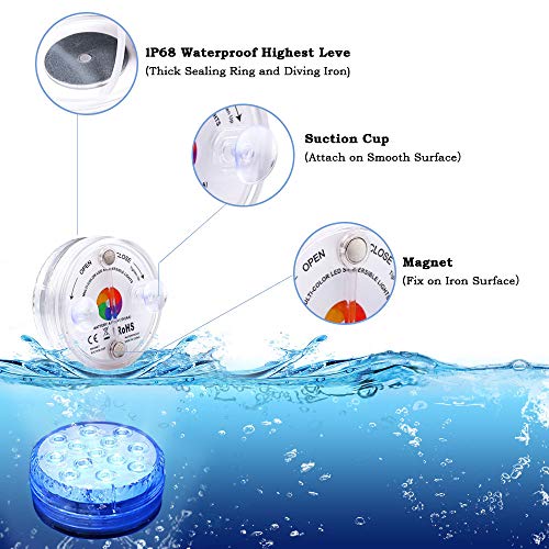 • [Due metodi di installazione magneti e ventose]: la nostra illuminazione da piscina luci a led subacquee sono classe di protezione IP68 l'illuminazione subacquea migliora la struttura impermeabile, il fondo che svita ha un o-ring in gomma per impedire all'acqua di entrare all'interno dotato di magneti speciali e ventose. Attaccare alla superficie del ferro con un magnete. Attaccare alla superficie liscia con una ventosa. Puoi scegliere in base ai tuoi desideri!