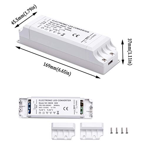 - 【Installazione semplice】 Trasformatore LED, potenza fissa 50 W, tensione di ingresso: CA 100-240 V, tensione di uscita: 12 V CC, 4.17 A. (L * W * H) 169 * 45.5 * 37mm, Il trasformatore è facile da installare e collegare tramite morsetti a vite.