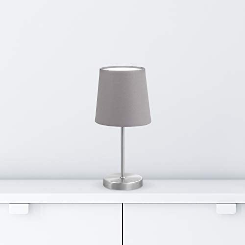 Lampada da comodino, Lampada da tavolo con paralume in tessuto grigio, adatta per lampadina E14 non inclusa max 25W, altezza 30.8cm, abat-jour per camera con interruttore on off sul filo, IP20, 230V