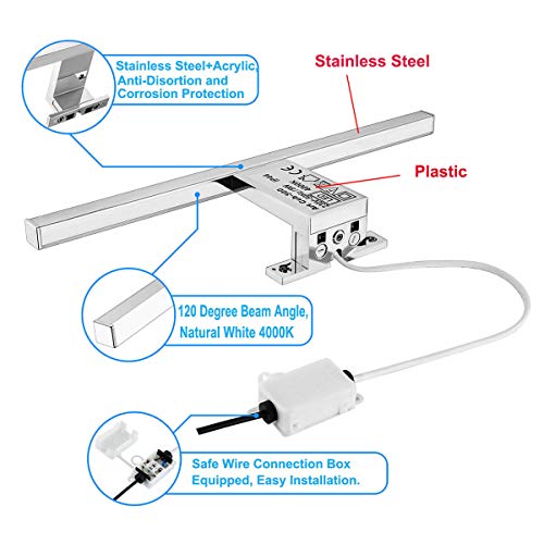 - Lampada frontale Bright and Pleasant Mirror 4000k, ampia gamma per l'utilizzo Con 4000 Kelvin e 400 lumen, questa illuminazione a specchio ha una luce neutra chiara senza il giallo o la tonalità blu. È molto adatta per l'uso come luce extra e senza oscurità la zona. Ideale per camere da letto, soggiorni, bagni, specchiere, armadietti a specchio, armadi, uffici e corridoi. Anche i disegni possono illuminare questa foto con LED montati permanentemente.