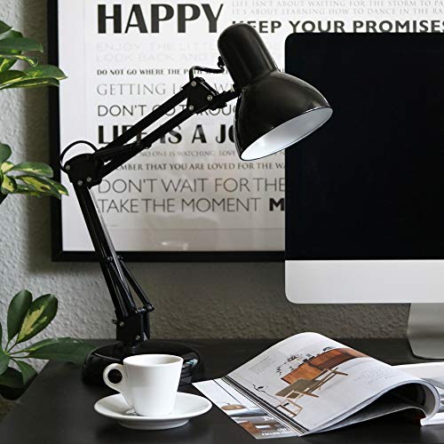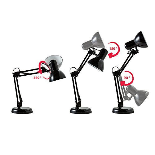 Lampada da tavolo retro, interruttore on off, luce orientabile, lampada da scrivania classica per l’illuminazione da interno, corpo metallo, color nero, attacco lampadina E14 (non inclusa) 230V IP20