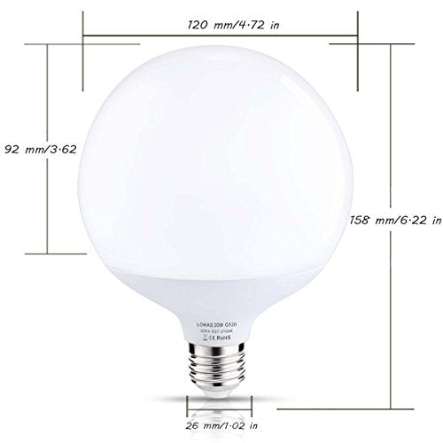 Lampada LED Globe, 20W (corrispondente a 140W), LOHAS E27 2 Pack