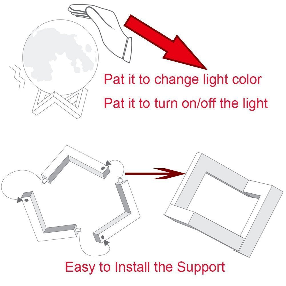 - ★ Luce lunare portatile: la lampada è composta da materiale super resistente, non come altre lampade in vetro, quindi non ti devi preoccupare di una eventuale caduta dalla scrivania in quanto la scocca è infrangibile.