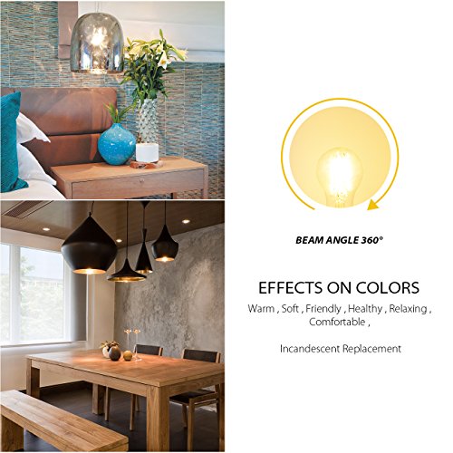 Lampadina Filamento LED E27, 8W Equivalenti a 60W, A60 E27 2700K-6 Pezzi