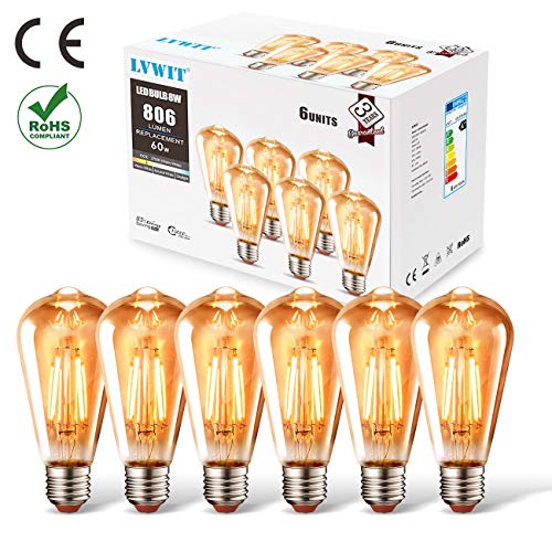 Lampadine di Filamento a LED, LVWIT ST64 E27 8W 2700K-6 Pezzi (Marrone)