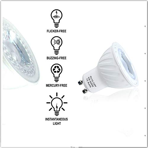 - Lampadine LED GU10 6 Watt 600 Lumen, tensione: 230 AC, angolo di visione: 38°, Bianca Freddo 6000K,Indice Di Rendering Ad Alto Colore(CRI>80) dimensione: ø50 * 50 * 55 mm.