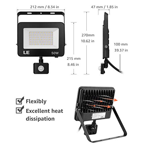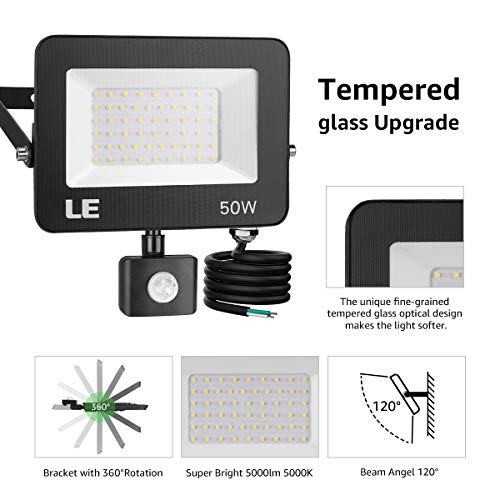 LE Faro LED da Esterno con Sensore di Movimento, 50W 5000 lumen Bianco 50w
