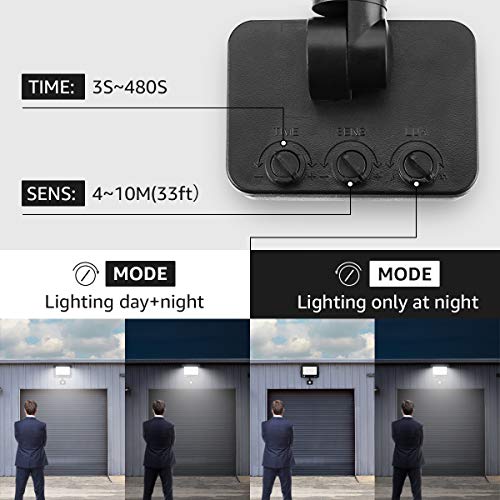 - 【Funzione di rilevamento】 Potente funzione di rilevamento del corpo umano a infrarossi, accensione immediata, conveniente e risparmio energetico. E la distanza di rilevamento, l'angolo, il tempo e l'illuminazione possono essere impostati e regolati manualmente.