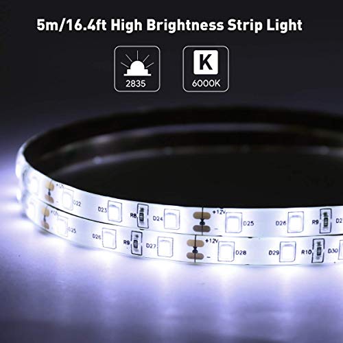 - 【Luminoso e Sicuro】: 300 LED 2835 SMD emettono luce bianca fredda brillante 1200 lumen, questa striscia è abbastanza luminosa per la maggior parte delle occasioni. La tensione di lavoro è di 12V DC, calore estremamente basso, sicuro da usare senza il rischio di prendere scosse elettriche.