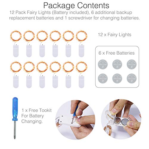 • 【Cosa ottieni】 12 confezioni 20 luci LED (batteria inclusa) , batterie di ricambio aggiuntive da 6 pezzi, garanzia di rimborso entro 60 giorni, garanzia limitata di 1 anno, servizio clienti cordiale 24 ore su 24