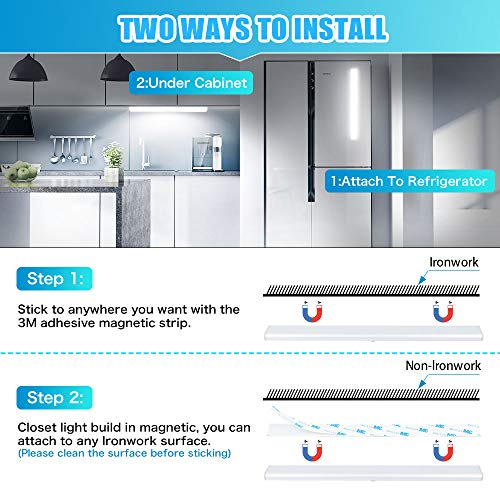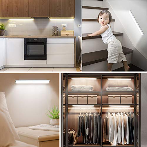 - [Design più Grande e Luminoso] con 40 LED per ogni luce, modello di perline lampada: 2835; Durata del cordone della lampada: 100.000 ore. Fa abbastanza luce per non inciampare mai nell'oscurità. Molto più luminoso di altre luci dell'armadio di dimensioni simili sul mercato.