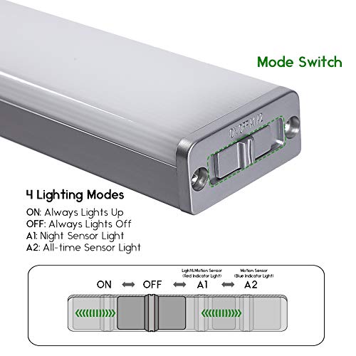- SUPER LUMINOSO & BATTERIA RICARICABILE: con 100 LED perline per ogni luce dell'armadio, 260 lumen, più luminosa delle altre luci dell'armadio a LED sul mercato. Batteria ricaricabile integrata da 2100 mAh, facilmente ricaricabile tramite USB. Dopo la carica completa, queste luci dell'armadio durano fino a 4 ore in modalità All-on e durano 1-2 mesi in modalità sensore di movimento.
