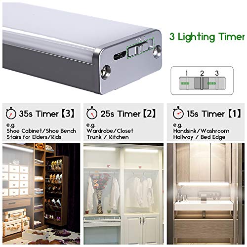 - TEMPO SENSORE REGOLABILE: la luce dell'armadio ad alta sensibilità ha 3 modalità di timer di illuminazione: 15S / 25S / 35S, la barra della luce del sensore si accenderà automaticamente entro 3M e l'area di rilevamento di 120 gradi quando rileva la presenza di persone o suoni, la luce dell'armadio dura 15 secondi, 25 secondi, 35 secondi in base al tempo impostato. Non c'è bisogno di toccare, sicuro e conveniente.