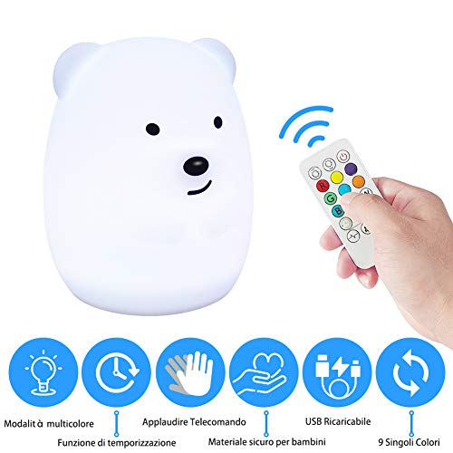 Luce Notturna Bambini in Silicone Morbido Safe Lampada da Comodino 9 Colori con Telecomando Ricaricabile Luce Notturna LED per Regalo/Ufficio/Stanza/Camera/Soggiorno