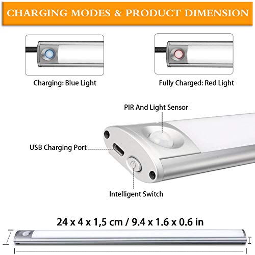 Luci Armadio con Sensore Ricaricabile 33 LED 4 Modalità 24CM, Bianco A