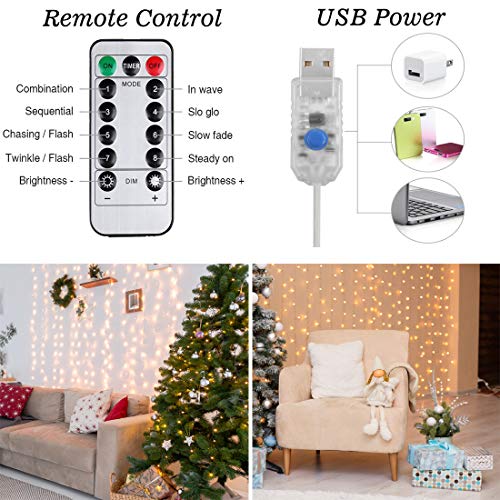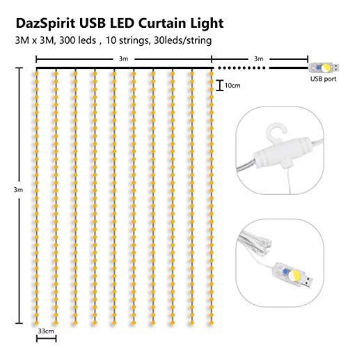 Luci per Tende a LED, DazSpirit Tenda luminosa Cascata Bianco Caldo