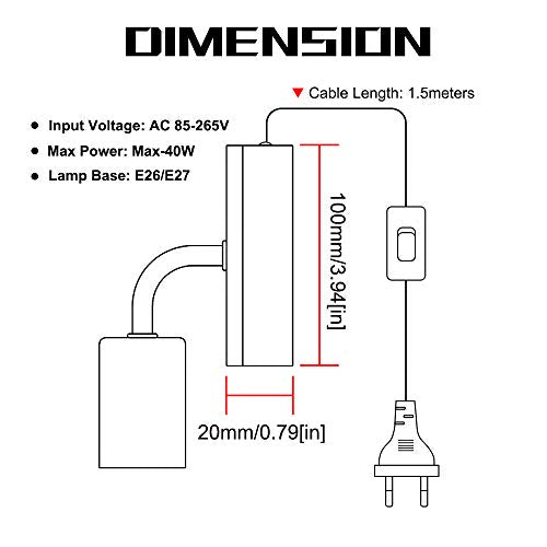 - 【Installazione semplice】 Questa lampada da parete è dotata di un cavo con presa EU. Nessun cablaggio richiesto, basta montare la scheda sulla parete o sulla scheda e collegarla alla presa di corrente.
