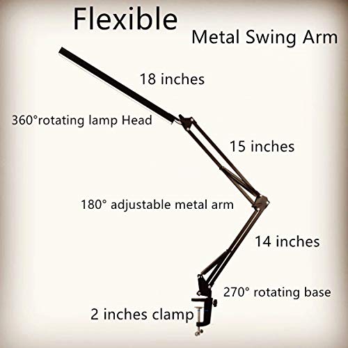 - ▶Lampada Architetto Altamente Flessibile - Lampada rotante a 360 °, base girevole a 270 °, braccio in metallo regolabile a 180 °, braccio di regolazione flessibile possono essere estesi ad un'altezza di 29 pollici, il che significa che la base e il paralume della lampada possono essere ruotati quasi a qualsiasi angolo. Viene fornito con un cavo USB da 5,6 piedi che può eliminare la preoccupazione per la distanza tra la lampada da tavolo e la presa