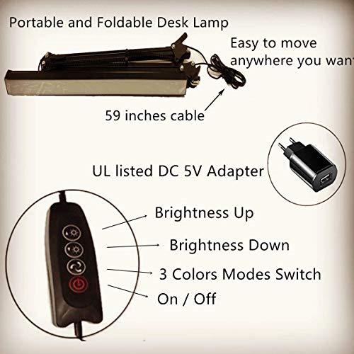 - ▶Lampada da Scrivania Portatile e Pieghevole - Design sottile: leggera (0.7kg), dimensioni pieghevoli (40x12 cm), il che significa che questa lampada da scrivania può risparmiare più spazio per te e può essere riposta facilmente quando non in uso. E puoi anche riporlo facilmente nello zaino quando esci in campeggio, fai escursioni e viaggi. Riceverai 1 x lampada led morsetto, 1 x alimentatore, 1 x morsetto metallico e 1 x manuale utente