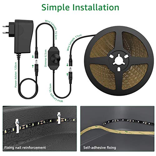 - Striscia LED Dimmerabile - 5M striscia LED dimmerabile è di essere regolare la luminosità da 10% a 100% con il dimmer. Striscia LED da 5m con 300 LEDs offre un' alta illuminosità creando il nostro ambiente romantica e unica.