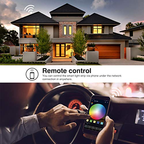 - 【Controllo Vocele Assistente Alexa & Google】 Striscia LED RGB Intelligente è compatibile con Alexa e Google Assistant, può accendere / spegnere la striscia, cambiare modalità di illuminazione, attenuare la luminosità, scegliere il colore. Nessun hub richiesto. Inoltre, richiede controllare Smart Striscia LED tramite 2.4 GHz WIFI.
