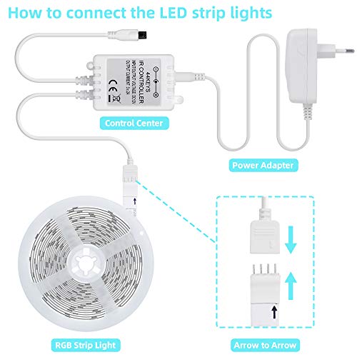 - ♚Alta qualità: Le strisce LED contengono 150 LED RGB 5050 SMD in 5 m ,5050 RGB SMD ultra-luminosa,e con 44 telecomando a chiave IR e alimentatore da 5A 12V.