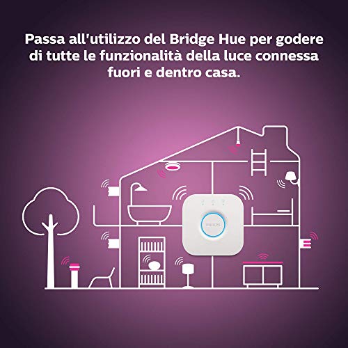 - Per accedere alle funzionalità completa del sistema di illuminazione smart Hue invece è necessario disporre di un Bridge Hue (venduto separatamente)