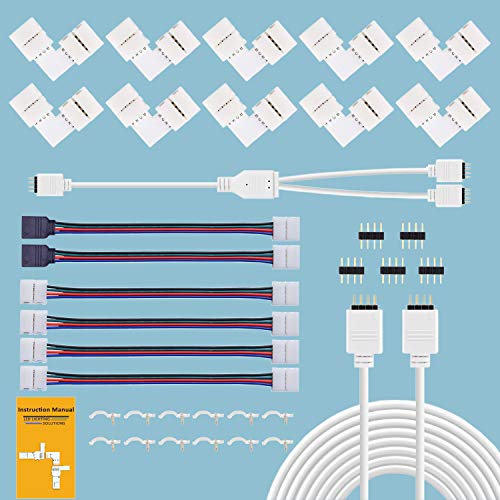 - La confezione include: 10 connettori a forma di L, 1 cavo di prolunga luce striscia LED 2M, 1 cavo di collegamento femmina 30CM da 1 a 2 porte, 4 connettori jumper striscia LED, 2 cavi filo connettore striscia LED, 5 connettori maschio 4 pin, 12 clip per strisce luminose a LED, 1 Manuale di istruzioni