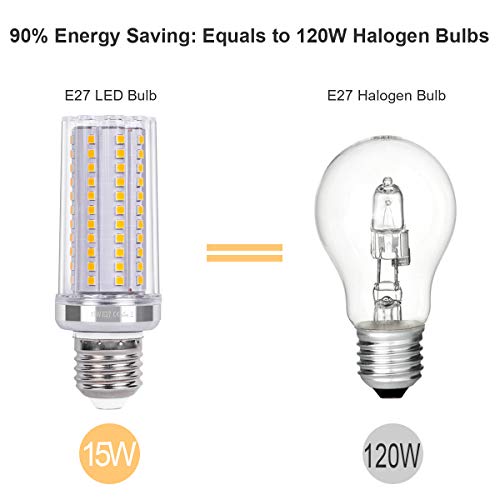 - ✿ 【4 Pezzi Lampadine economiche a basso consumo】- SanGlory 15W E27 LED si illuminano come lampadine alogene da 120 W. Con solo il 15% di consumo energetico, forniscono un'emissione luminosa di 1720 lumen e un accurato colore bianca calda 3000K, risparmiando fino al 85% di potenza. A + efficienza energetica.
