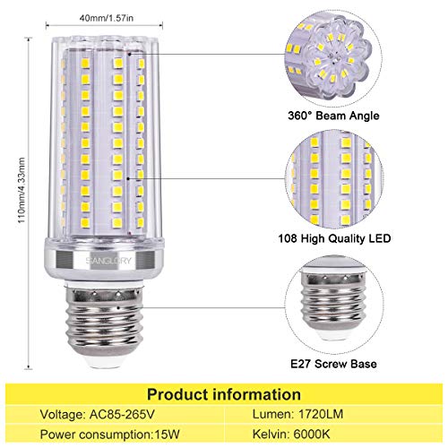 - ✿ 【Lampadine LED E27 15W Super luminosa】- Realizzato in alluminio aeronautico e plastica PC, con buona dissipazione del calore, non regolabile, senza ronzio o tremolii. 108 x 2835 SMD, Angolo del fascio di 360 °, 15W 1720LM Super luminoso, CRI> 80. Dimensioni piccole che permettono l'uso ovunque. Le dimensioni sono 11cm di lunghezza per 4 cm di diametro.