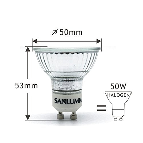 - La lampadina Sanlumia 5W GU10 è dotata di LED SMD di alta qualità e ha una potenza luminosa fino a 400 Lumen, con una classe di efficienza energetica A+. Questa lampadina può ridurre i costi di illuminazione cumulativi di oltre il 90%.