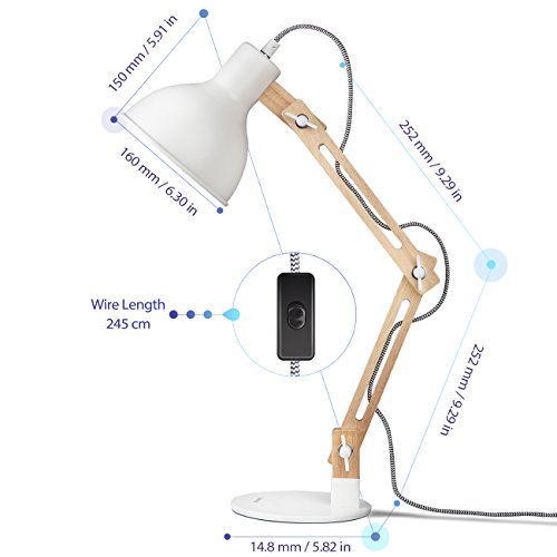 Tomons lampada da lettura design legno classico, tavolo, Bianco