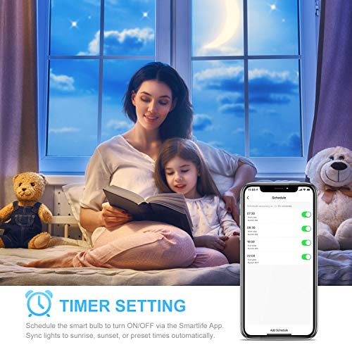 - 【Impostare Timer】- Puoi impostare il timer per accendere e spegnere automaticamente la Wifi lampadina tramite l'app.