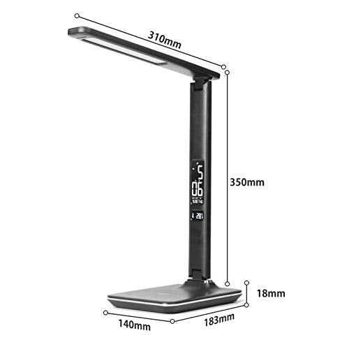 • Lampada da tavolo con multifunzione: è progettata con lampada da scrivania regolabile dimmerabile, sveglia, termometro calendario e alimentatore per dispositivi mobili in uno