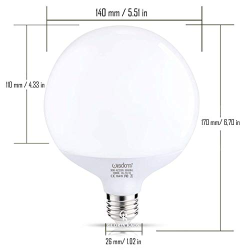 Wisdom Powered By G.Kaos - Lampada LED Globe 30W = 270 WATT 30w Caldo 3000k