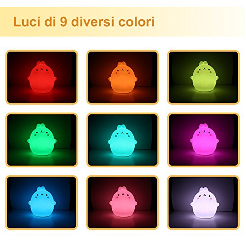 YISSVIC Luce Notturna LED per Bambino 9 Colori 10 Livelli Multicolore